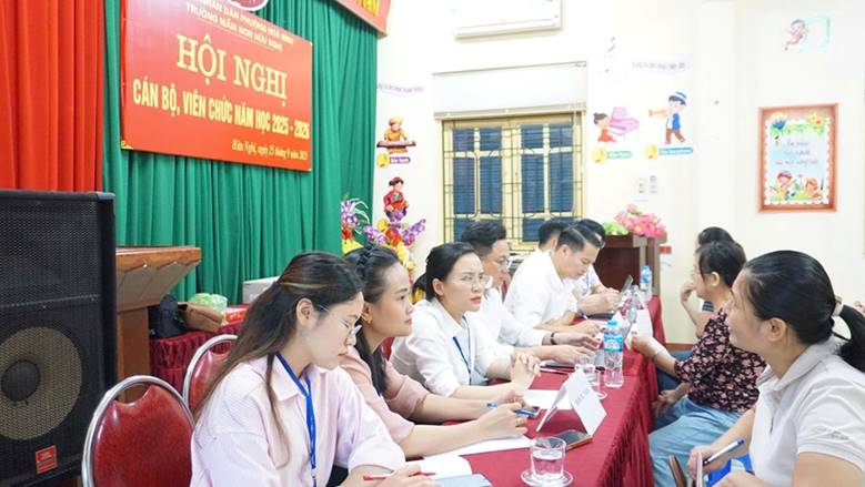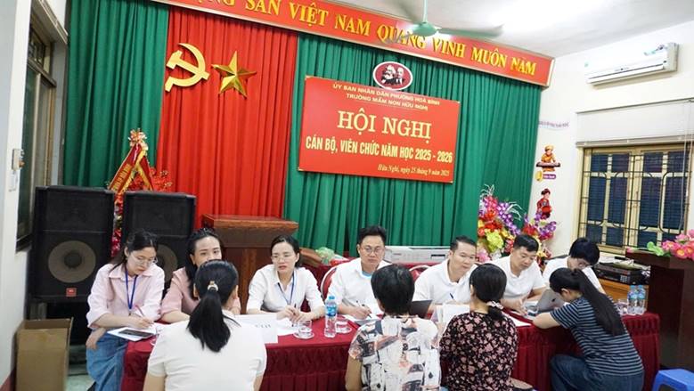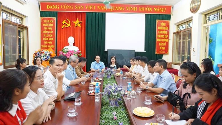 Ban tổ chức và Ban giám hiệu nhà trường Trường mầm non Hữu Nghị gặp mặt trước khi diễn ra chương trình.